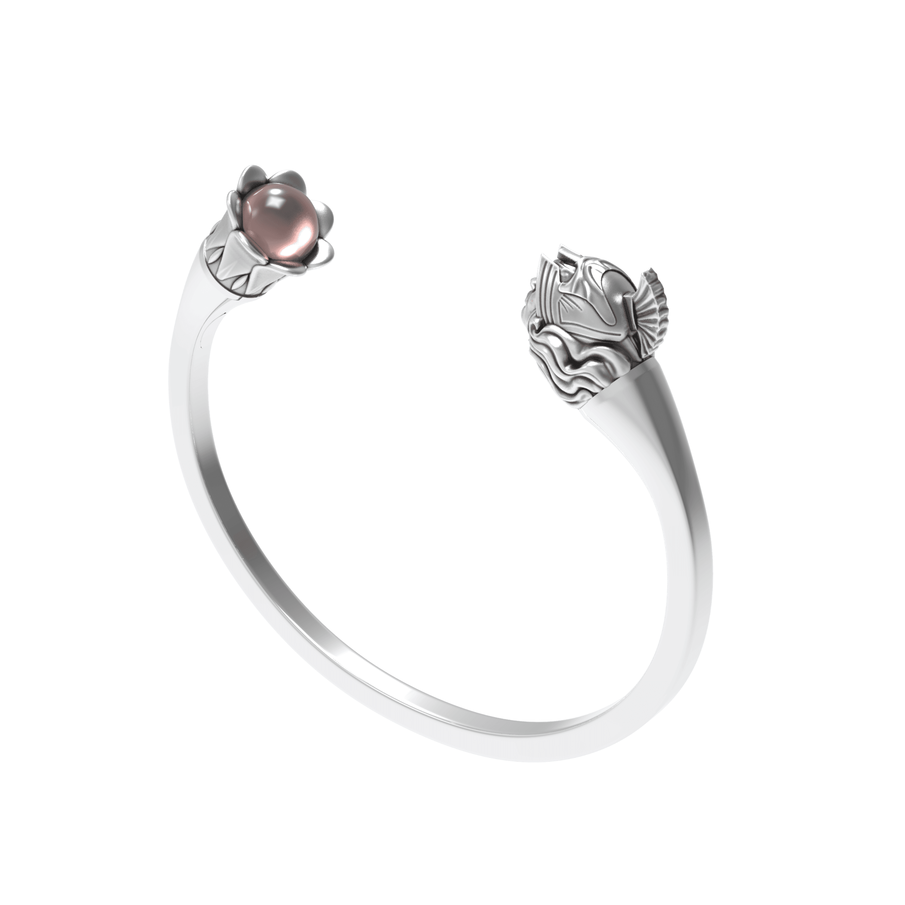 Nous travaillons principalement l’argent 925 certifié, mais certaines créations sont disponibles en vermeil (argent plaqué or), en or et serties de pierres précieuses telles que le quartz, le saphir ou le diamant.