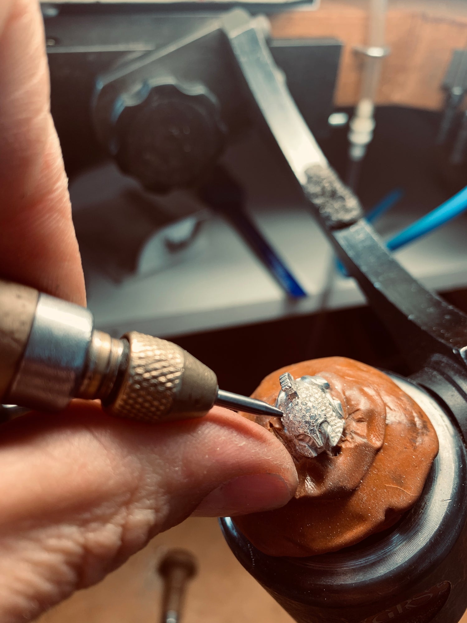 Chacune de nos pièces est réalisée dans notre atelier basé en région Rhônes-Alpes pour en garantir la qualité. De la toute première idée au bijou final, nous faisons absolument tout du Design, reprise de fonte, polissage, sertissage.